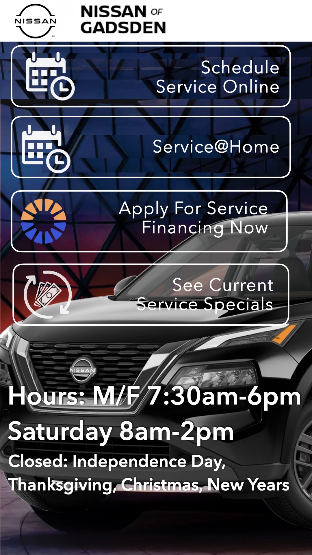 Direction To Nissan of Gadsden Service Department. Click Here.
